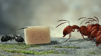 In a peaceful little clearing, the remains of a hastily abandoned picnic spark a battle between two tribes of ants. A bold young ladybug finds himself caught in the middle. He befriends the leader of the black ants, Mandible, and helps him save the anthill from the assault of the red ant warriors, led by the fearful Butor.